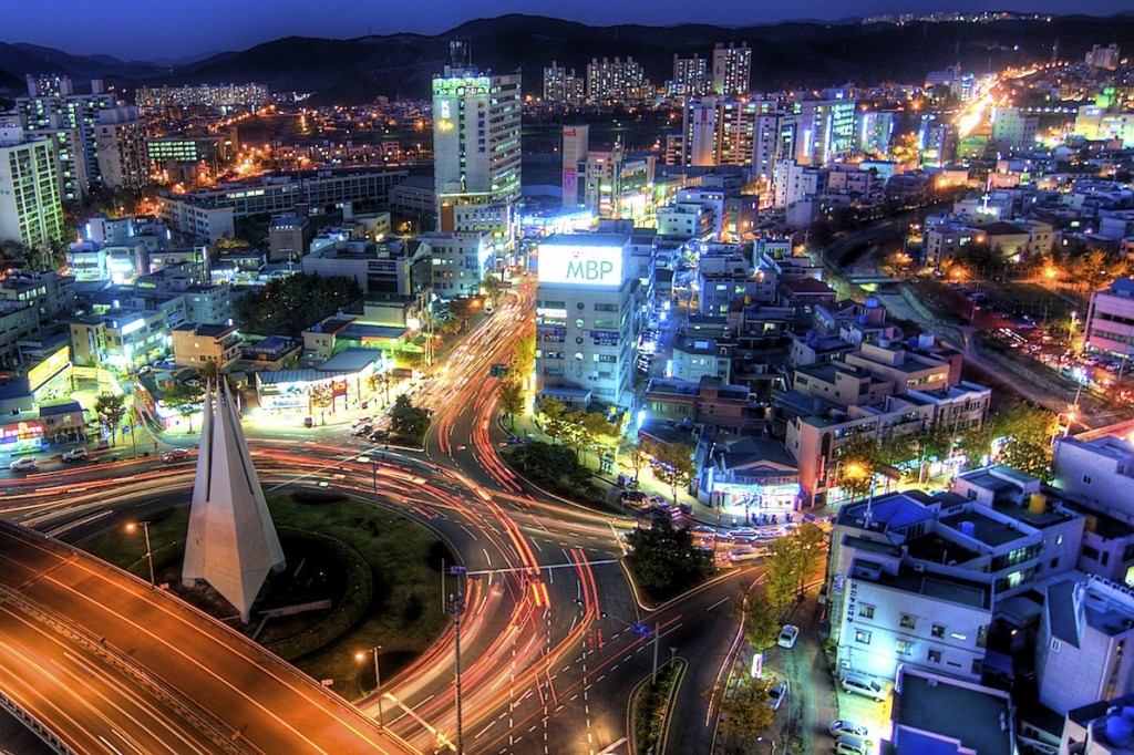 Composition and Set-up: I placed the rotary in the lower part of the frame because I like how yours eyes start there (lower left) and then drift across to the upper right. It just had nice flow. The other reason was the expressway was sort of in the way for the typical centered shot of a busy rotary. This was set up on a tripod and bracketed 2 stops apart (-2/0/+2) and I used my Tokina 12-24 mm wide angle.