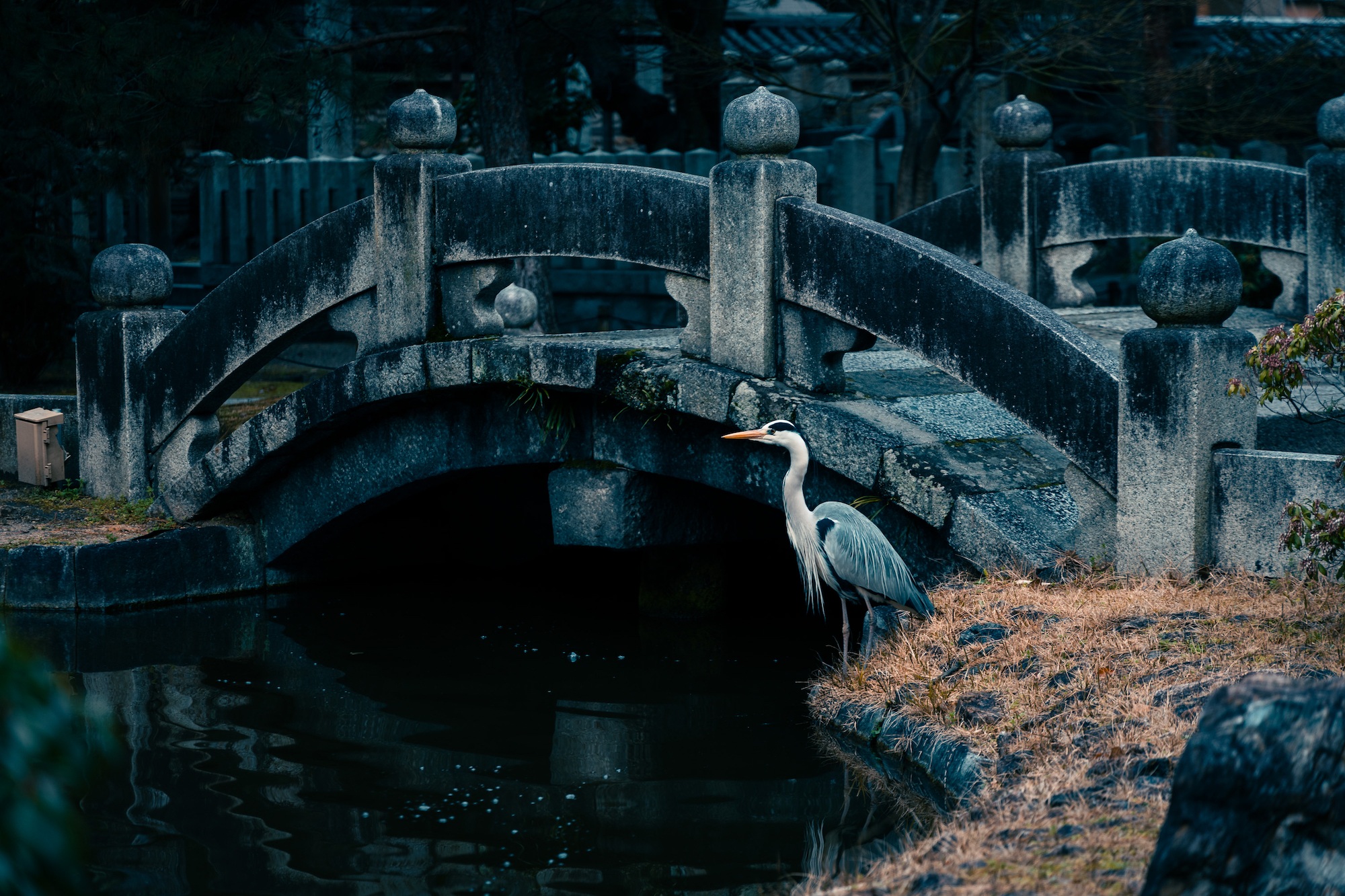 Final destination: Shofukuji Zen Temple. As if scripted, a heron stood motionless in the pond by the main hall. I crept closer, got my shots, watched it take off.