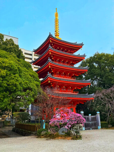 I found both near Canal City. Then it was on to Tochoji Temple. Early morning, the city still waking up. I skipped the wooden Buddha—seen it before, stunning, but today was about the journey. Instead, I shot the shrine, the plum blossoms, gifts from the universe before the crowds took over.